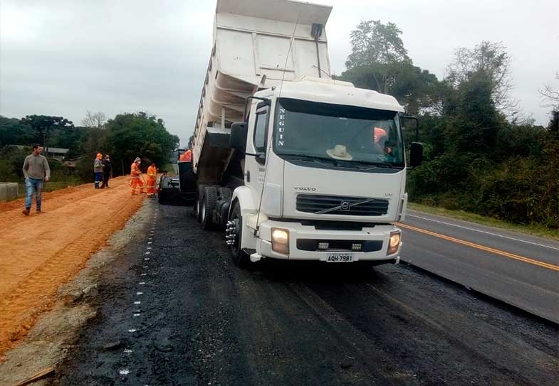 Execução de faixas de desaceleração e aceleração e acesso, contendo terraplenagem, drenagem, base em material pétreo, revestimento em CBUQ e sinalização viária.